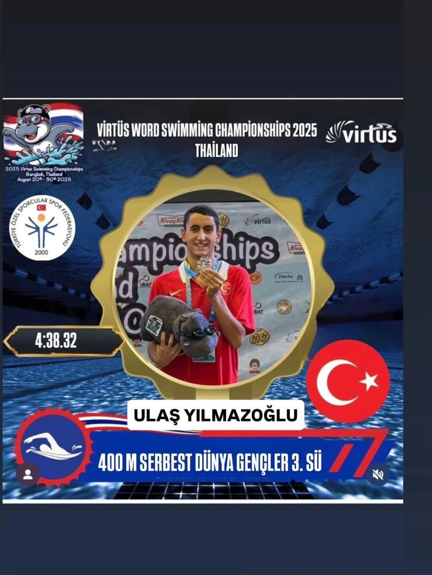 “Milli yüzücülerimizin Bangkok’taki tarihi başarısına tanıklık ediyoruz. Otizm kategorisinde ilk kez altın madalya kazanarak bayrağımızı göndere çektiren Bilge Kağan Yılgın başta olmak üzere, tüm sporcularımızı, antrenörlerimizi ve teknik ekibimizi gönülden kutluyorum. İnanç ve azmimizle bu şampiyonadan daha nice madalyalarla döneceğimize yürekten inanıyorum.”