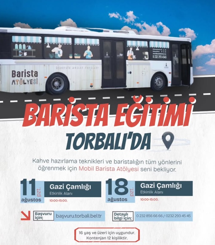 Torbalı Belediyesi, İzmir Büyükşehir Belediyesi iş birliğiyle gençlere yönelik meslek edindirme çalışmalarına bir yenisini daha ekliyor. Kahveye ilgi duyan ve barista olmak isteyen gençler için düzenlenecek Mobil Barista Atölyesi, katılımcılara kahve hazırlama tekniklerini öğrenme ve baristalık mesleğini yakından tanıma fırsatı sunacak.